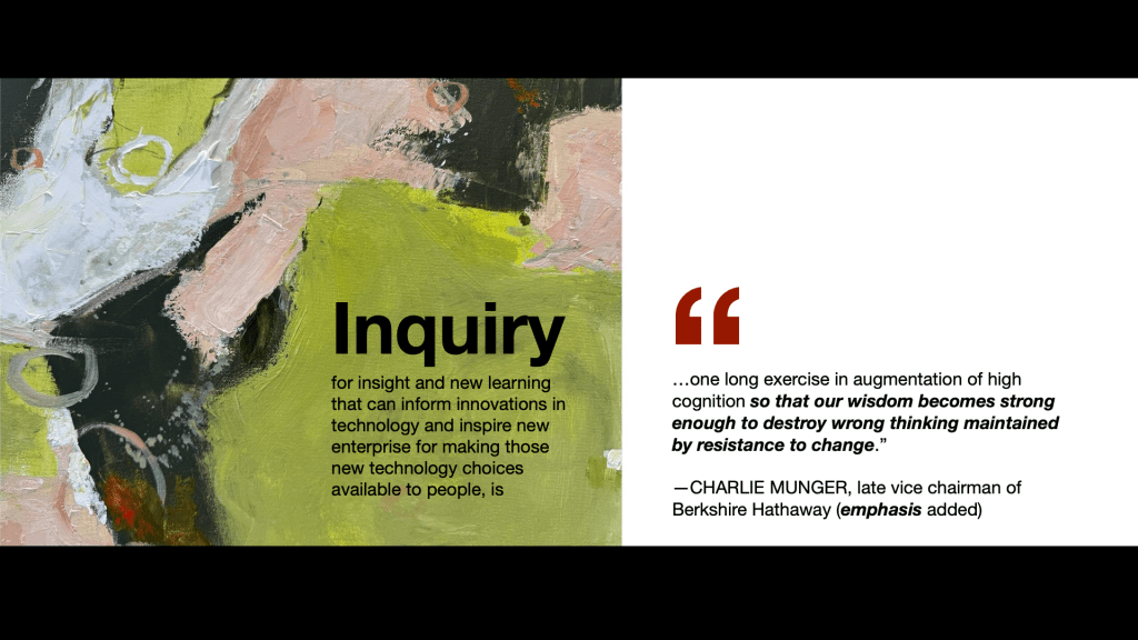 “one long exercise in the augmentation of high cognition, so that our wisdom becomes strong eough to destroy resistance to change” – Charlie Munger, late of Berkshire-Hathaway