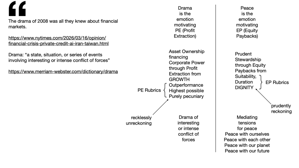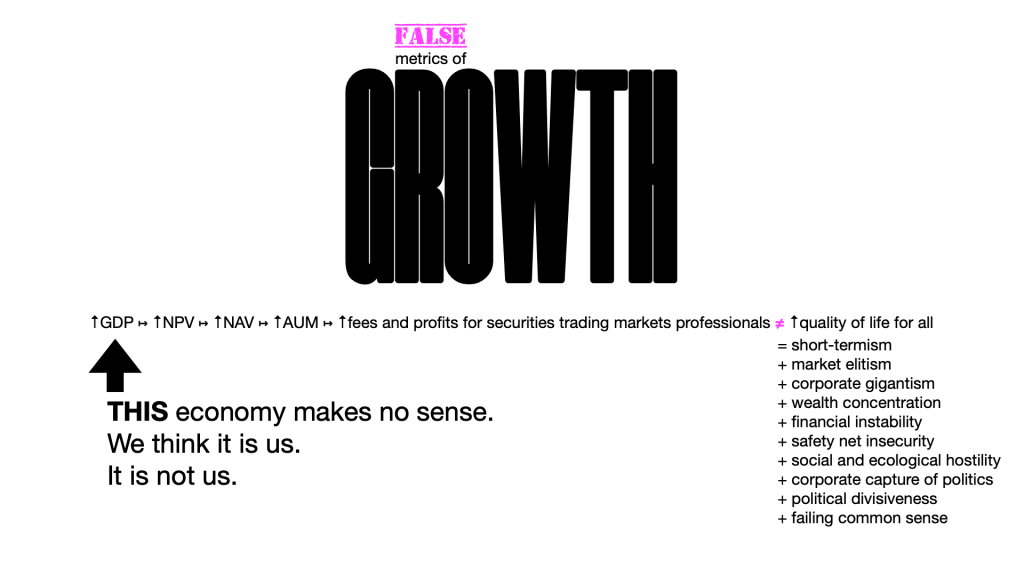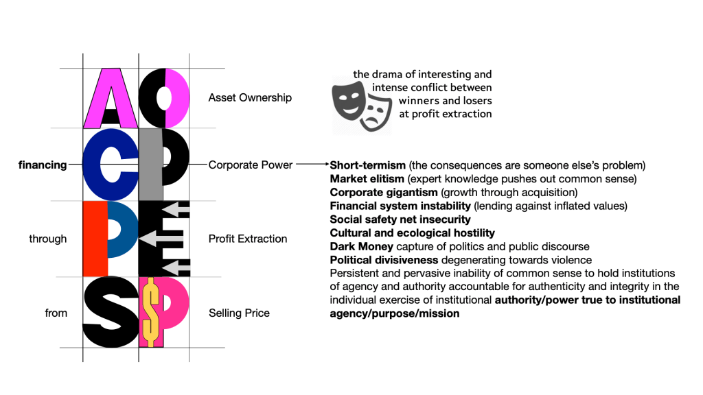 The math we have – the mathematics of Corporate Power financed by Asset Ownership for Profit Extraction from Growth in Selling Price – is not giving us the economy we need and want: an economy of social cohesion on a planetary scale, within planetary limits, in the 21st Century, and beyond…