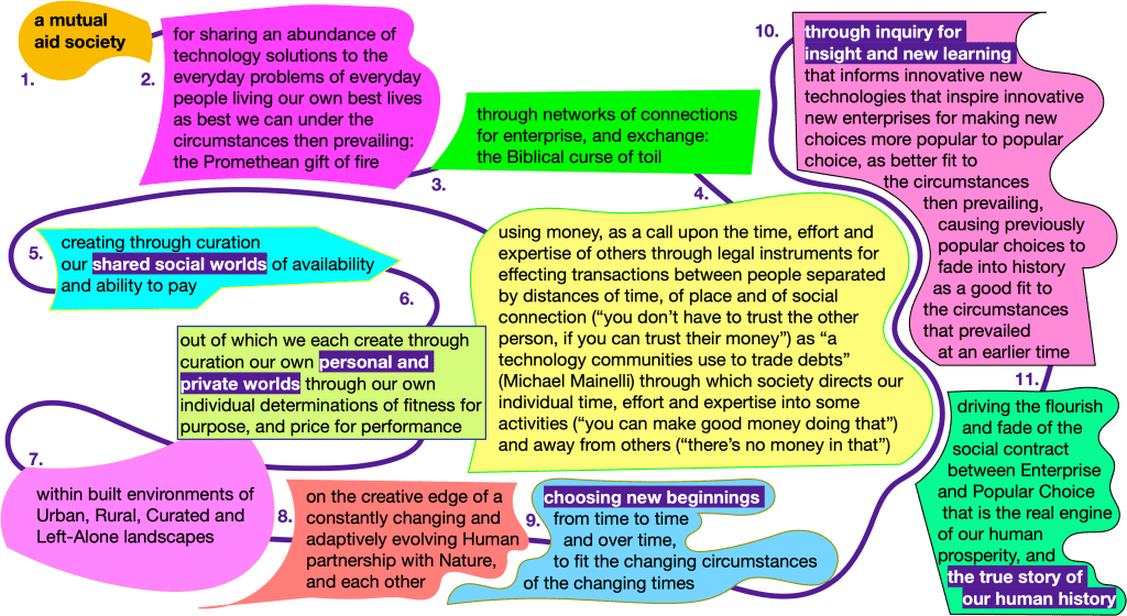 a big rambling rewrite of our social narrative of being human in society, through economy, using technology, money and the law, and