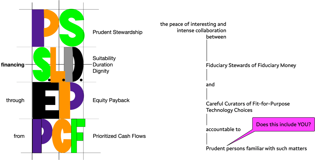 A small technical story of shifting fiduciary finance from the mathematics of profit extraction to the mathematics of equity paybacks, that opens up into