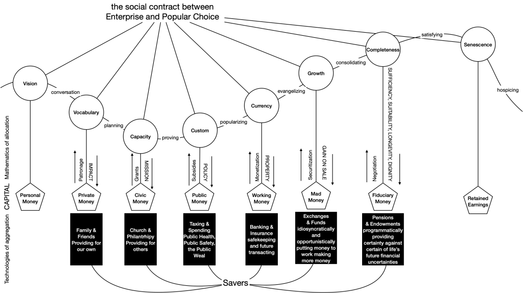 This is obviously the special pleading for the self-interest of securities trading markets professionals, in bringing the tens of trillions in society’s “safe” money aggregated into social trusts for provisioning the mutual aid societies of Workforce Pensions and Civil Society Endowments, as “forever machines”, to assure income security in a dignified future for some, directly, and all, consequently.
