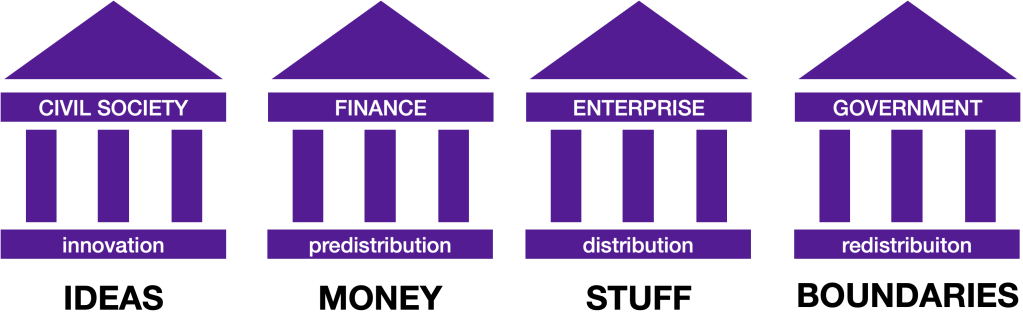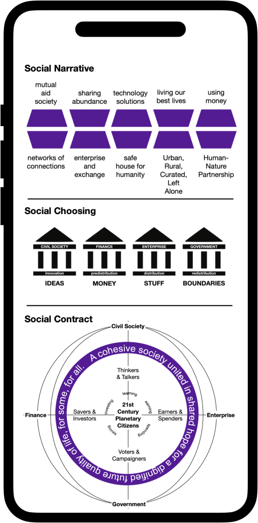 To ease this polycrisis of social discord, we have to disconnect Fiduciary Money from Growth as a false proxy for the right economy, and re-connect it to Social Cohesion, as the right rubric for the right economy.