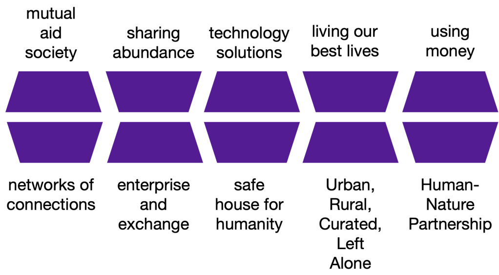 Social Stewardship Equity shows us the economy as a mutual aid society for sharing an abundance of technology solutions to the everyday problems of everyday people living our best lives under the circumstances, every day, through networks of connections for enterprise and exchange to construct and reconstruct a safe and dignified house for humanity along the creative edge of an evergreen, ever-changing adaptively evolving Human-Nature partnership, which is human.