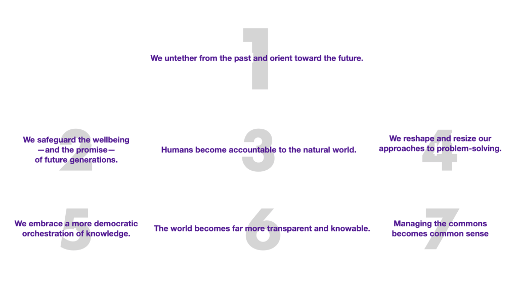 Social Stewardship Equity dwells along the creative edge of the future as our new frontier, choosing new beginnings from among evolving possibilities, and their consequences, as times change, to fit the changing times.