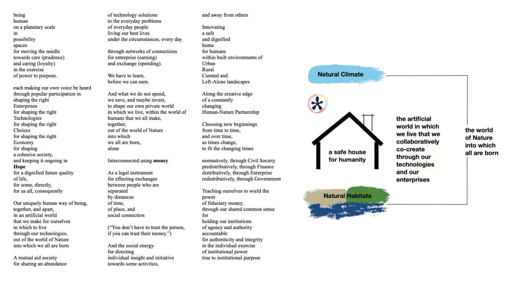- A new social narrative of being human in society, through economy, using money on a planetary scale in the 21st Century, and beyond…