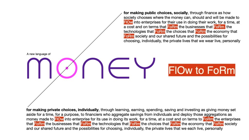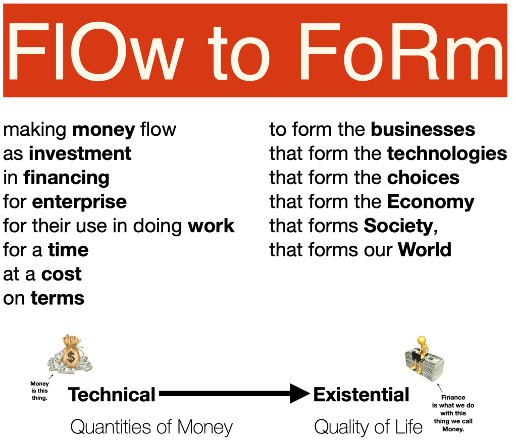 a new conversation at the vanguard of public discourse to adaptively evolve a new language and logic for talking about money as savings for investment in financing for enterprise