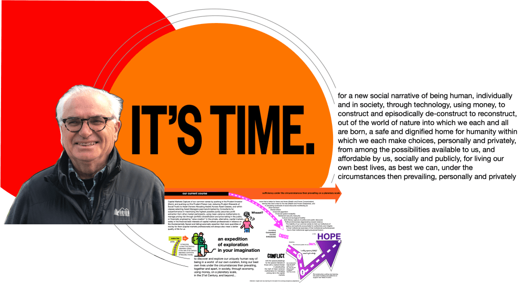 I am the publisher, producer, editor and composer of this digital experience of radically rethinking our social narrative of being human in the world, as a passion project to show you what I have learned to see, as my way of inviting you to join with me in promoting a new set of rules for how we. the people, can, should and will take back the power of our pensions, as “other than privately self-interested capital” to finance “non-shareholder purposed entities” in attaching “the rights and needs of the general population, of consumers and wider society,… to the economy” (Peter Ellis).